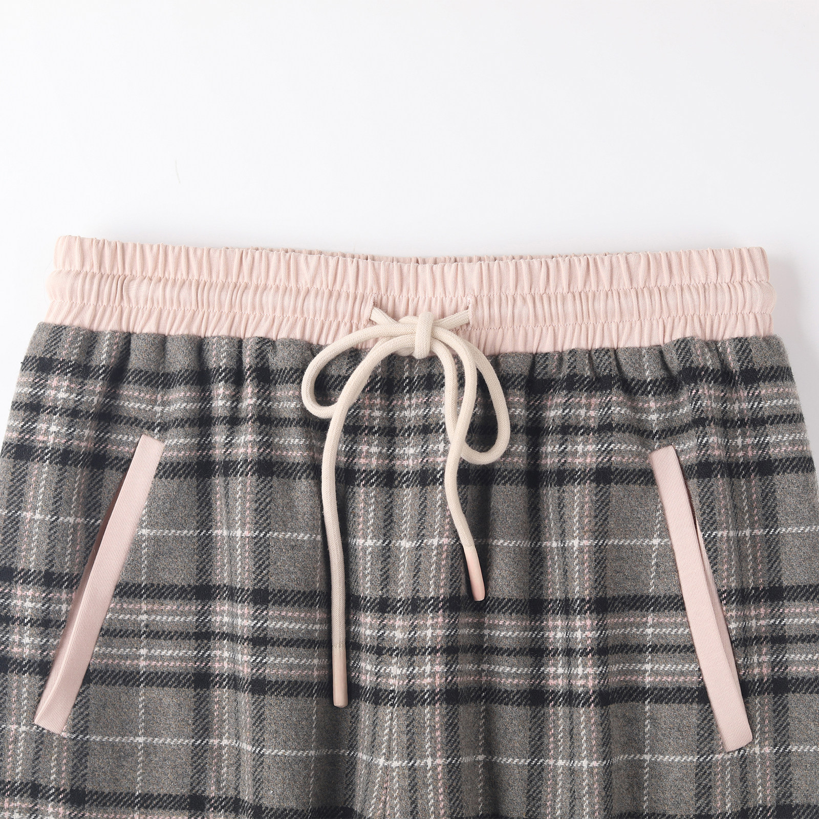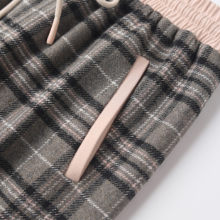 休闲百搭韩系简约长裤 wana 新款 秋季 女 try格纹拼接羊毛保暖直筒裤