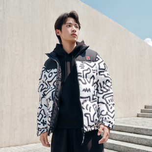运动立领厚羽绒服保暖外套 撞色印花设计时尚 波司登男女同款 短款