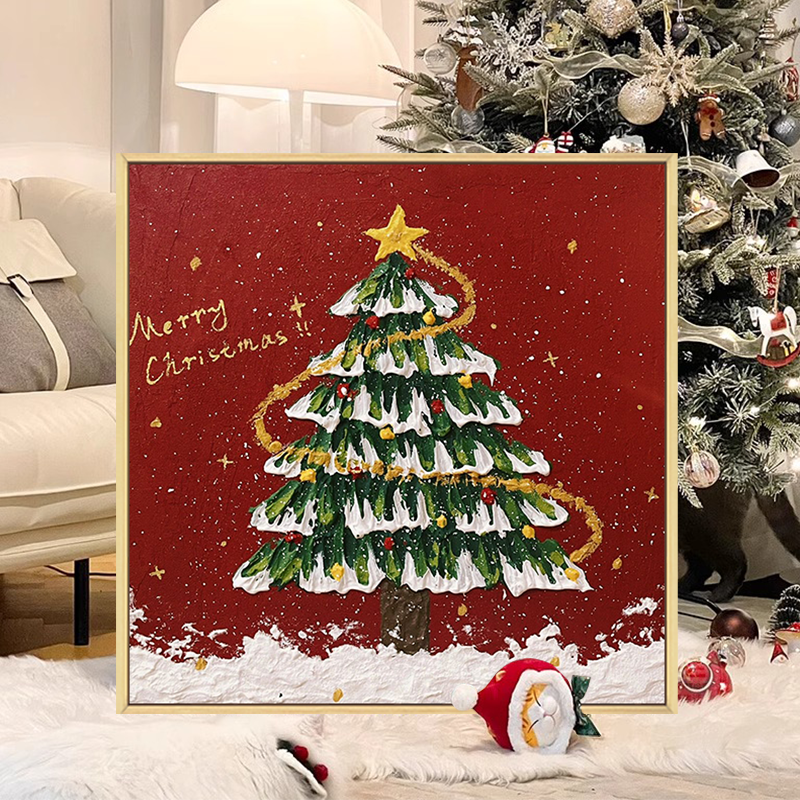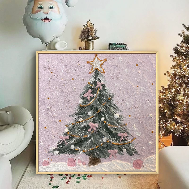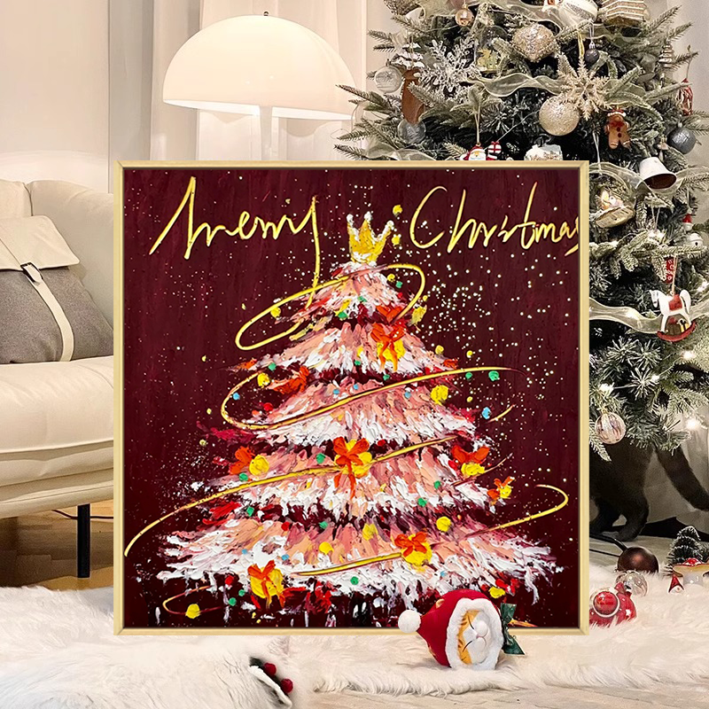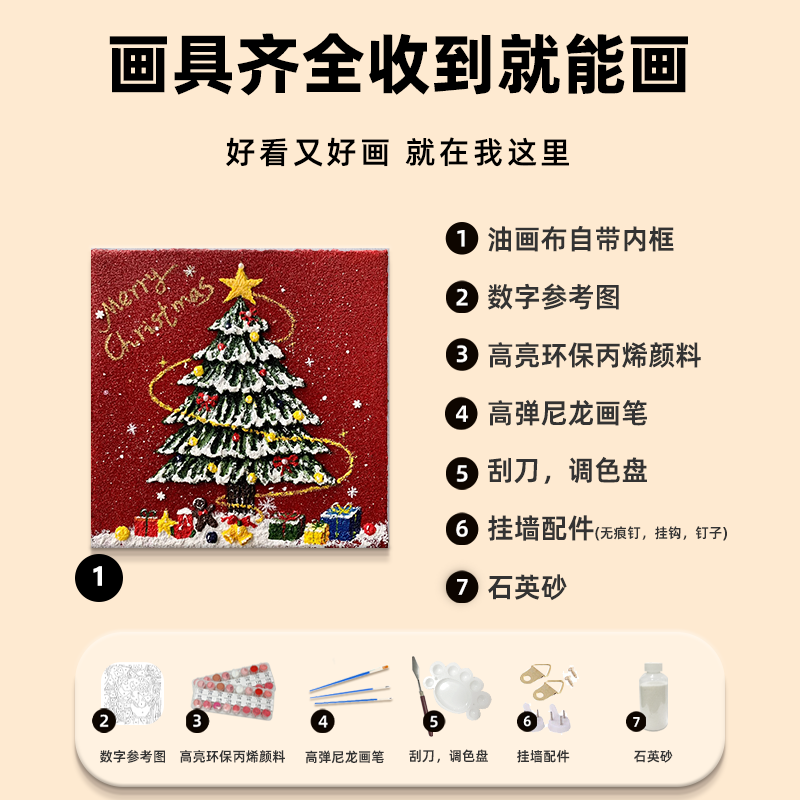 圣诞树肌理画石英砂丙烯diy手工材料包高级感礼物装 饰画数字油画