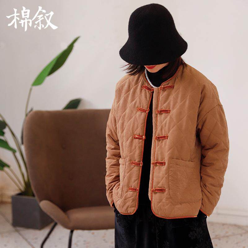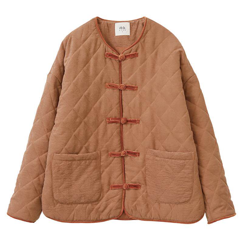 桃皮绒改良中式 冬季 圆领棉衣菱格棉服短外套女24323 告别价229