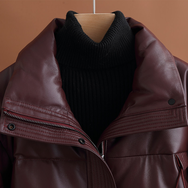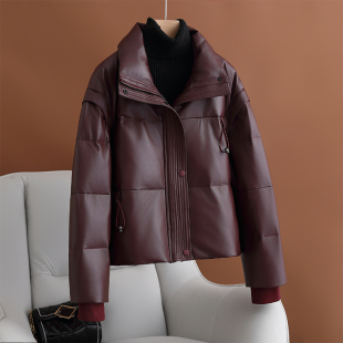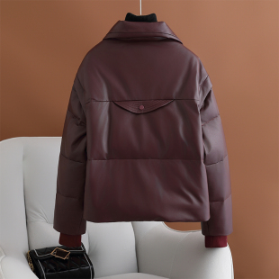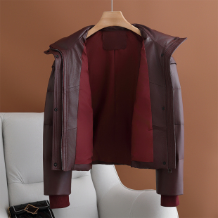 小个子妈妈高端绵羊皮外套皮衣短款 海宁真皮羽绒服女2024冬季 新款