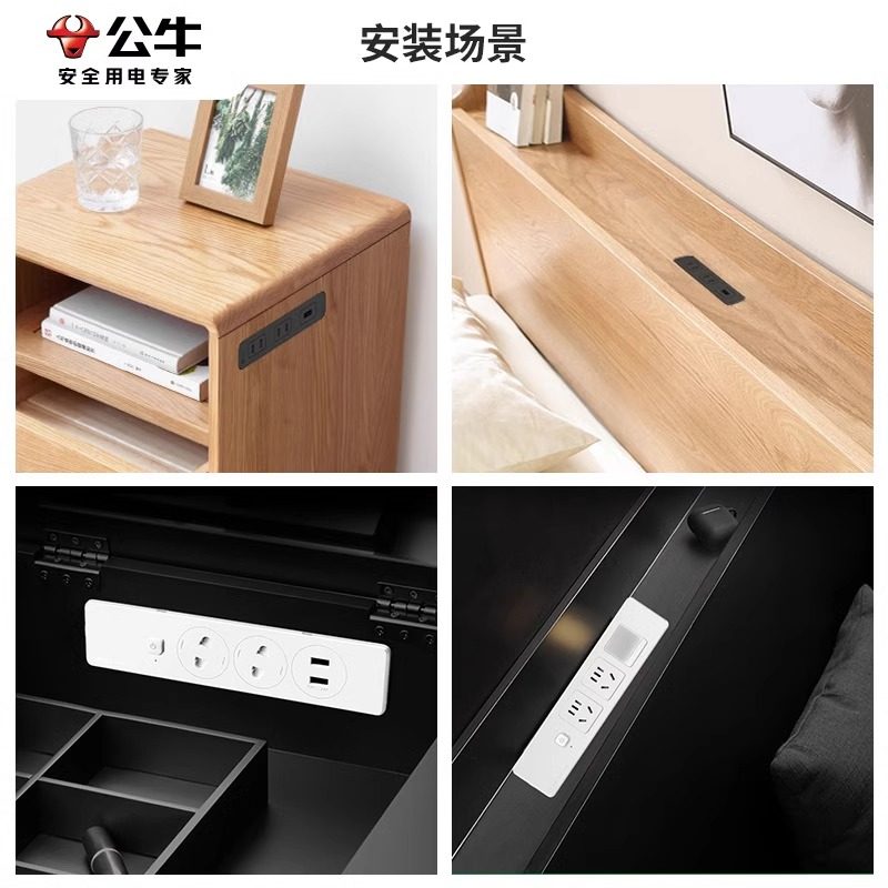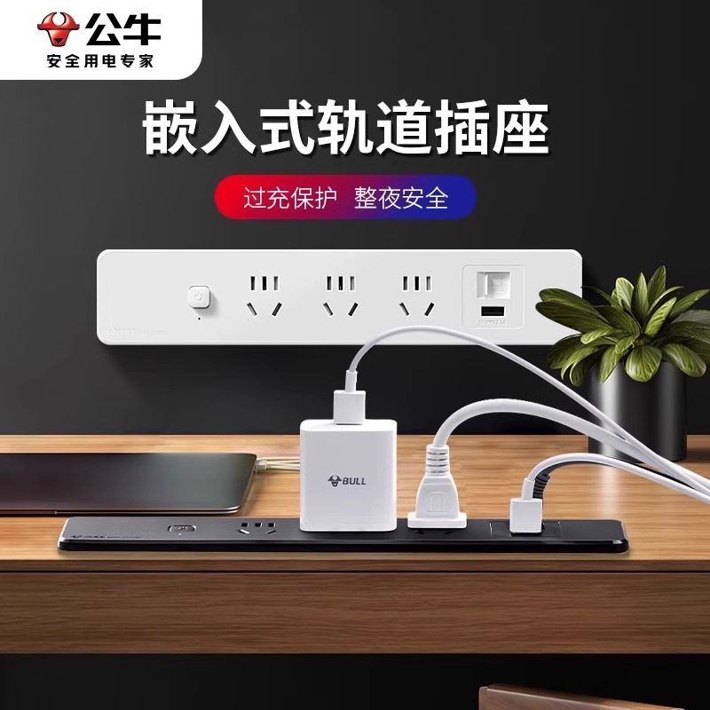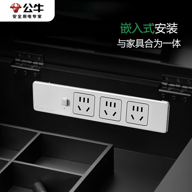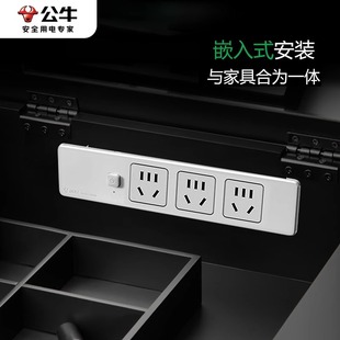 公牛床头柜嵌入式 插座办公桌橱柜子桌面插排插线板插板拖线板带线