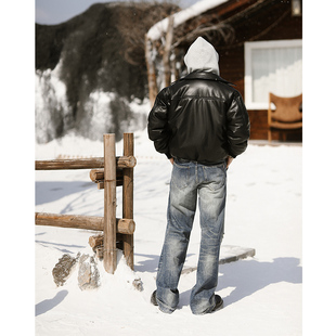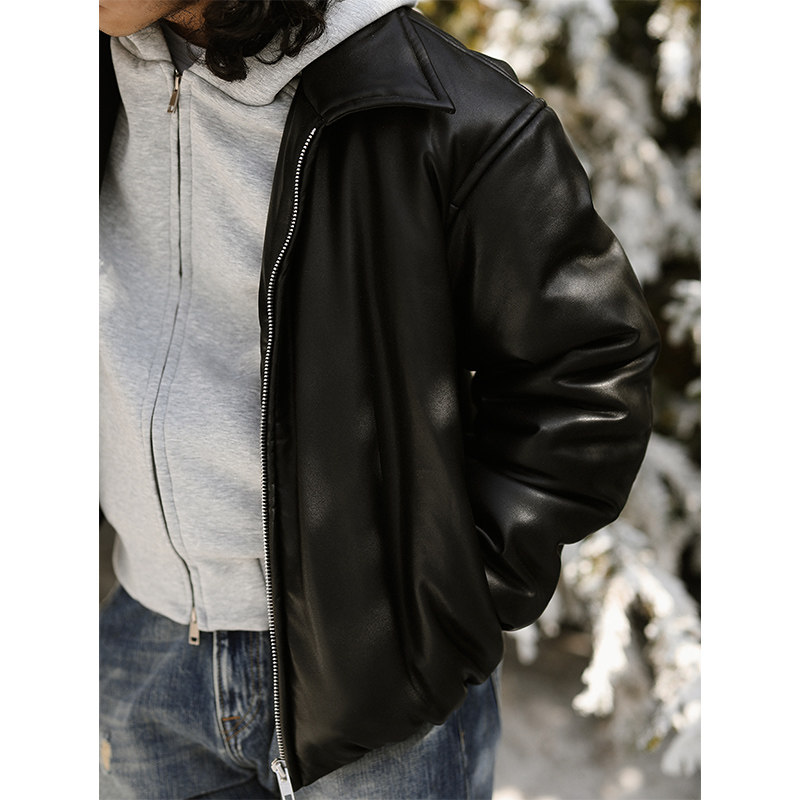 MBBCAR窄幅 Bomber飞行员皮衣夹克 Urban城市系列面包剪裁填充短款