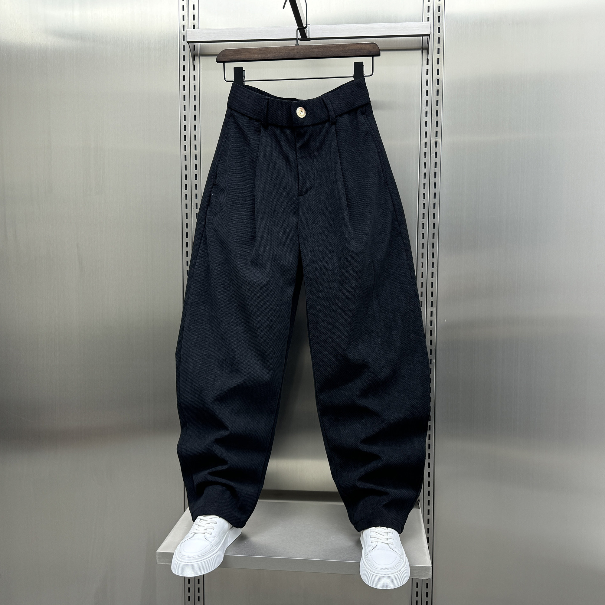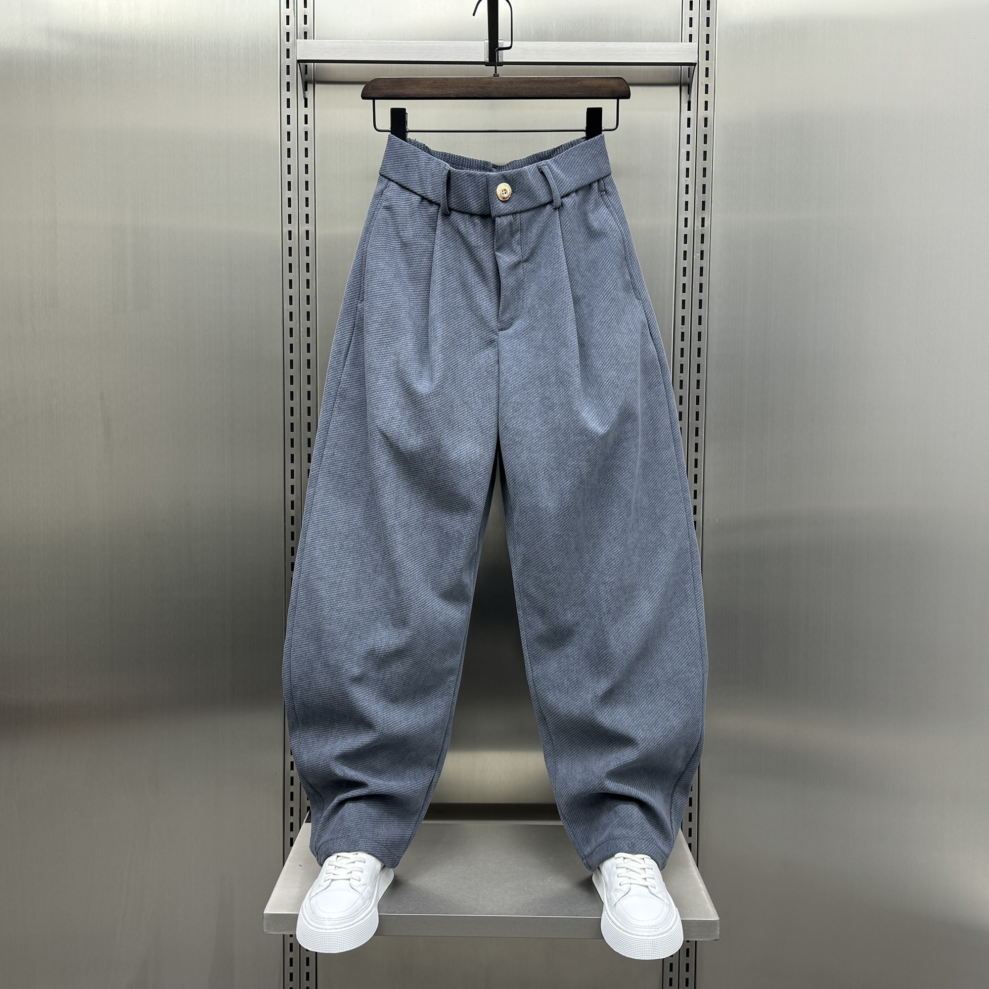 条绒阔腿休闲弯刀裤 秋季 子潮流痞帅流行百搭宽松大码 裤 潮 2024男士