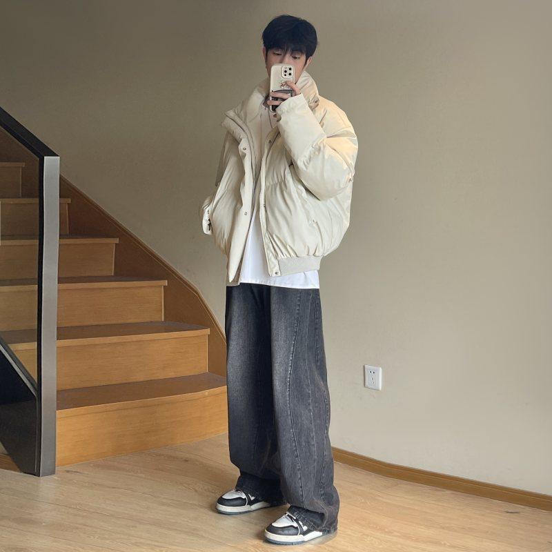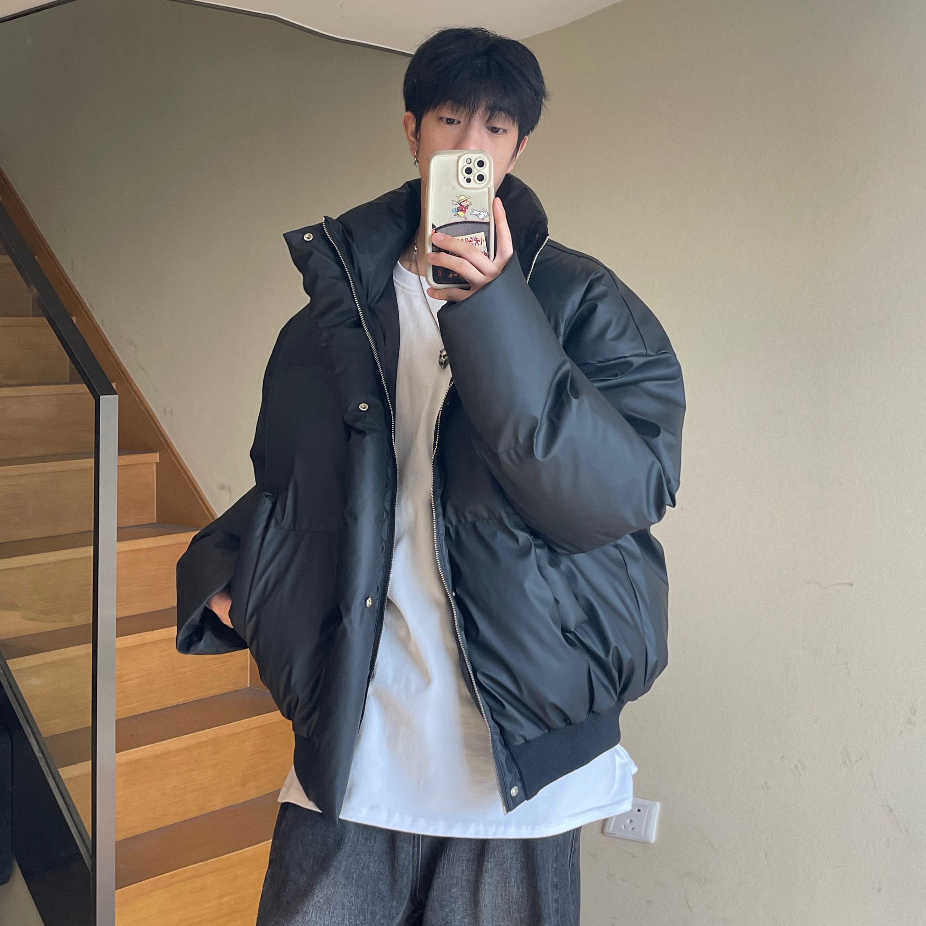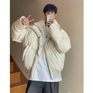 面包服棉服外套 纯色百搭加厚男款 美式 cityboy情侣羽绒服pu皮短款