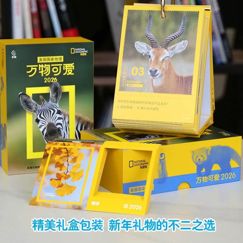 2026日历美国国家地理万物可爱 赠取景框珍藏日历精美礼盒趣味亲自互动自然科普教育动物植物百科365个趣味问题马年台历新年礼物