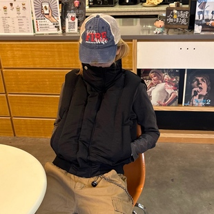 NOVACAM 廓形立领弯刀领扣设计感重磅质感马甲男保暖背心 休闲美式
