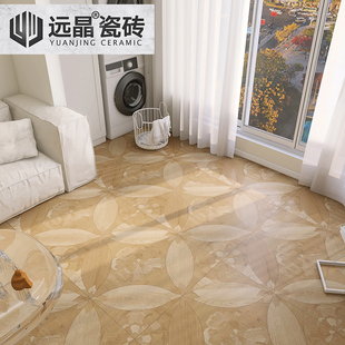 远晶 800x800拼花全瓷木纹客厅地板砖防滑耐磨卧室全屋阳台瓷砖