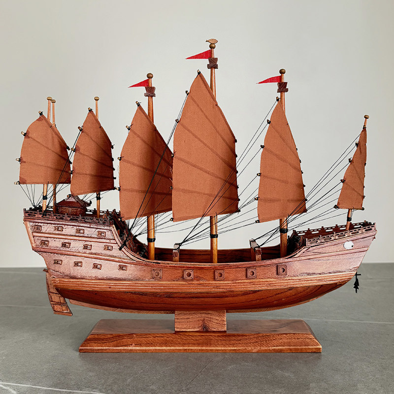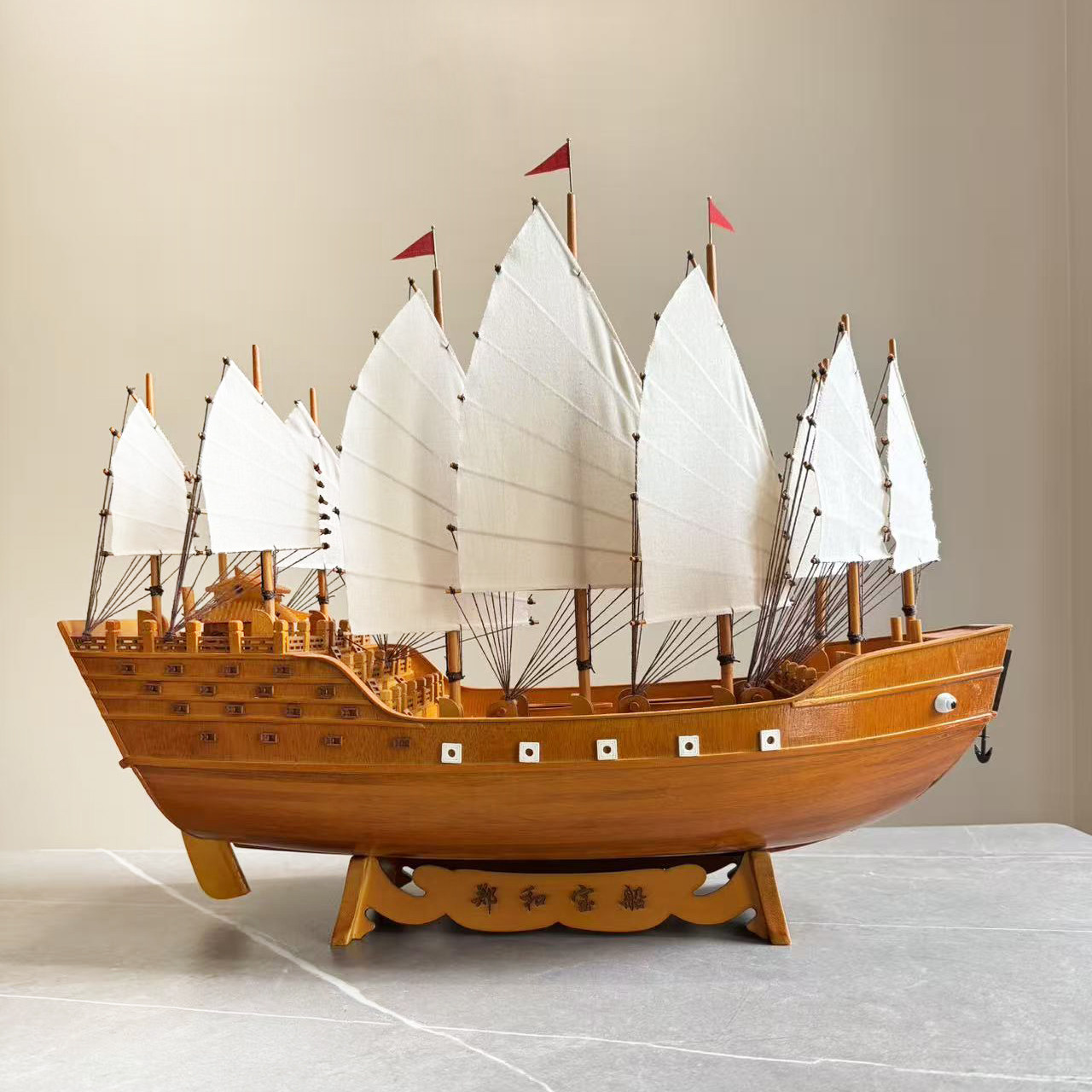 工艺 成品模型一帆风顺帆船摆件实木手工福船古代中式 郑和宝船