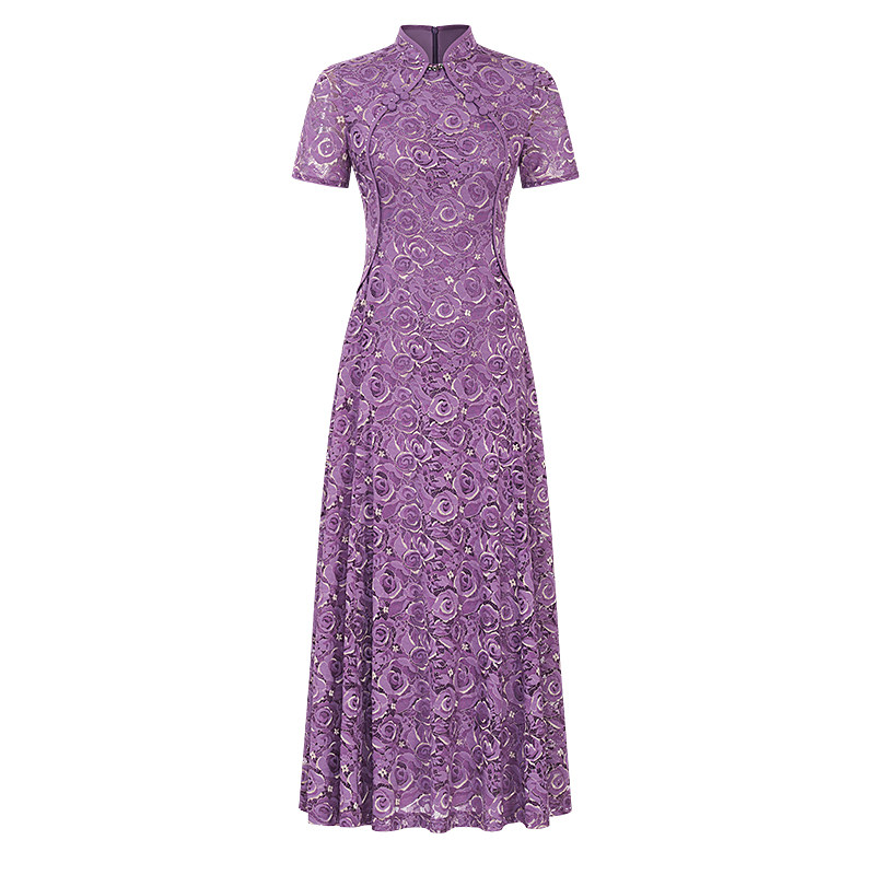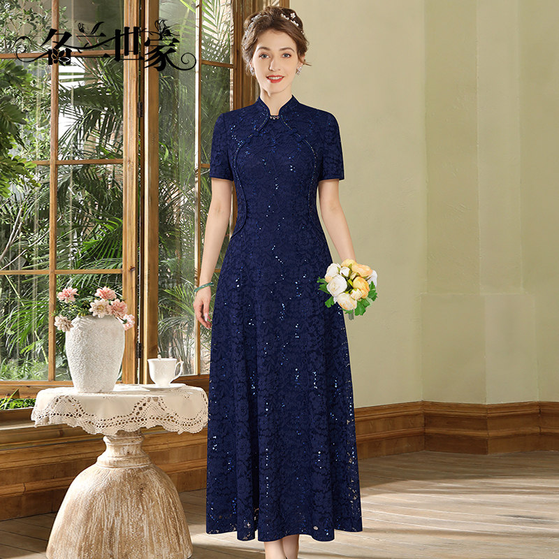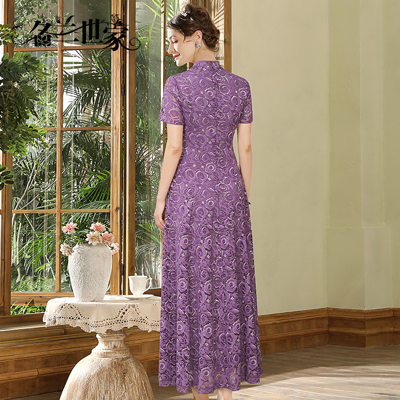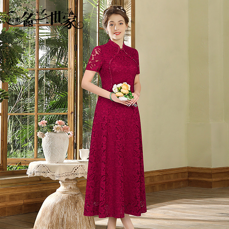 名兰世家缕空蕾丝短袖 连衣裙婚宴喜婆婆喜妈妈红色礼服裙