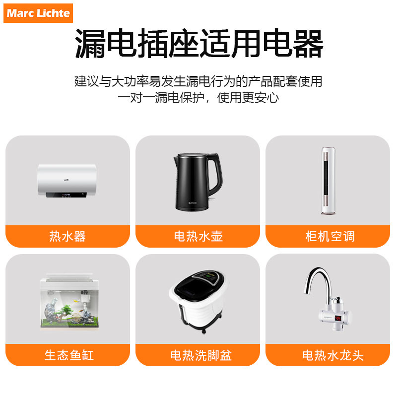 防漏电保护器插头空调热水器大功率10A 16A直插转接漏保插头家用
