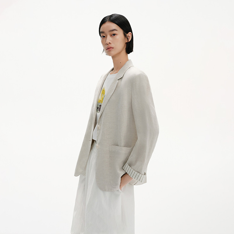 亚麻小西装 播商场同款 女25夏休闲宽松外套BDS2XD2521 播奥莱