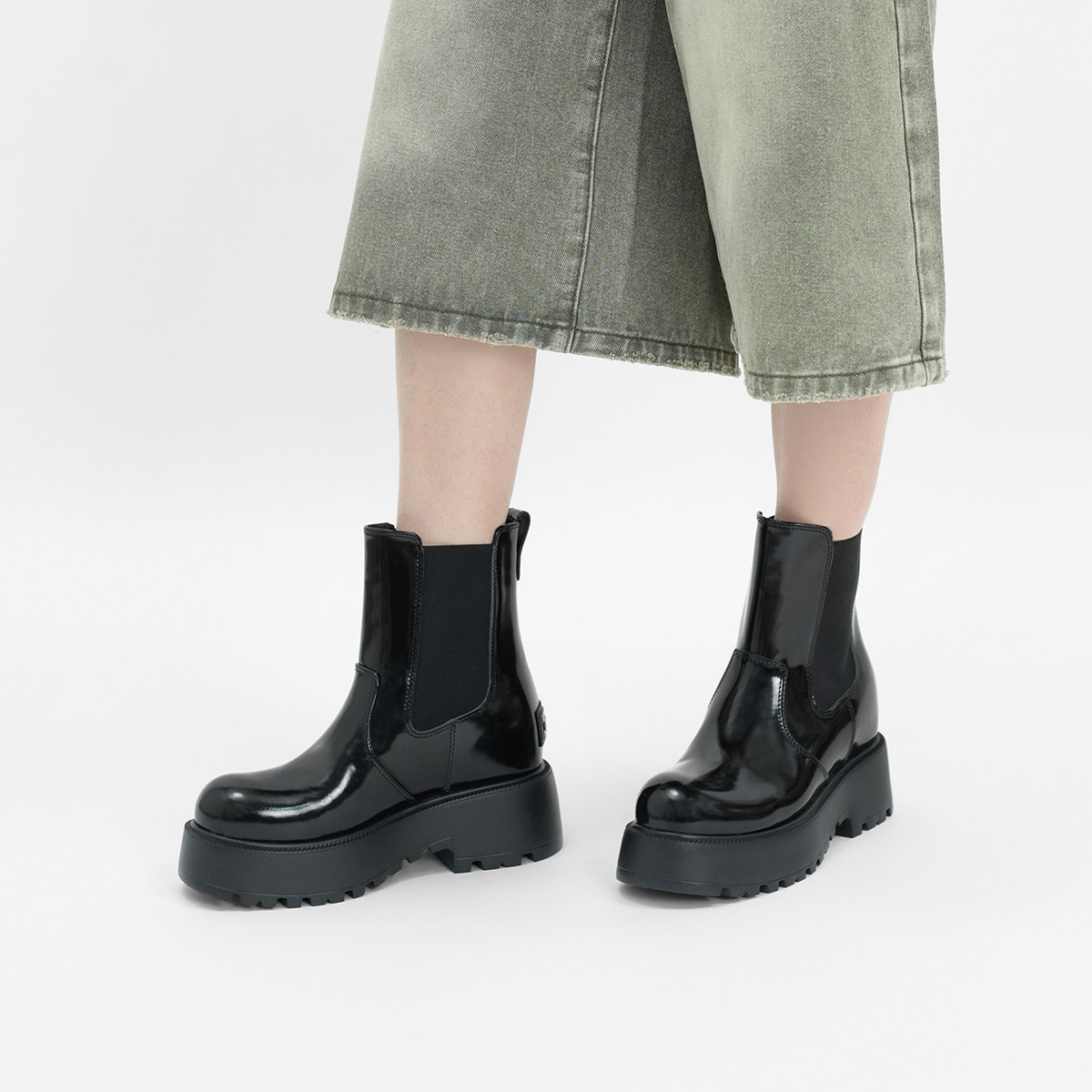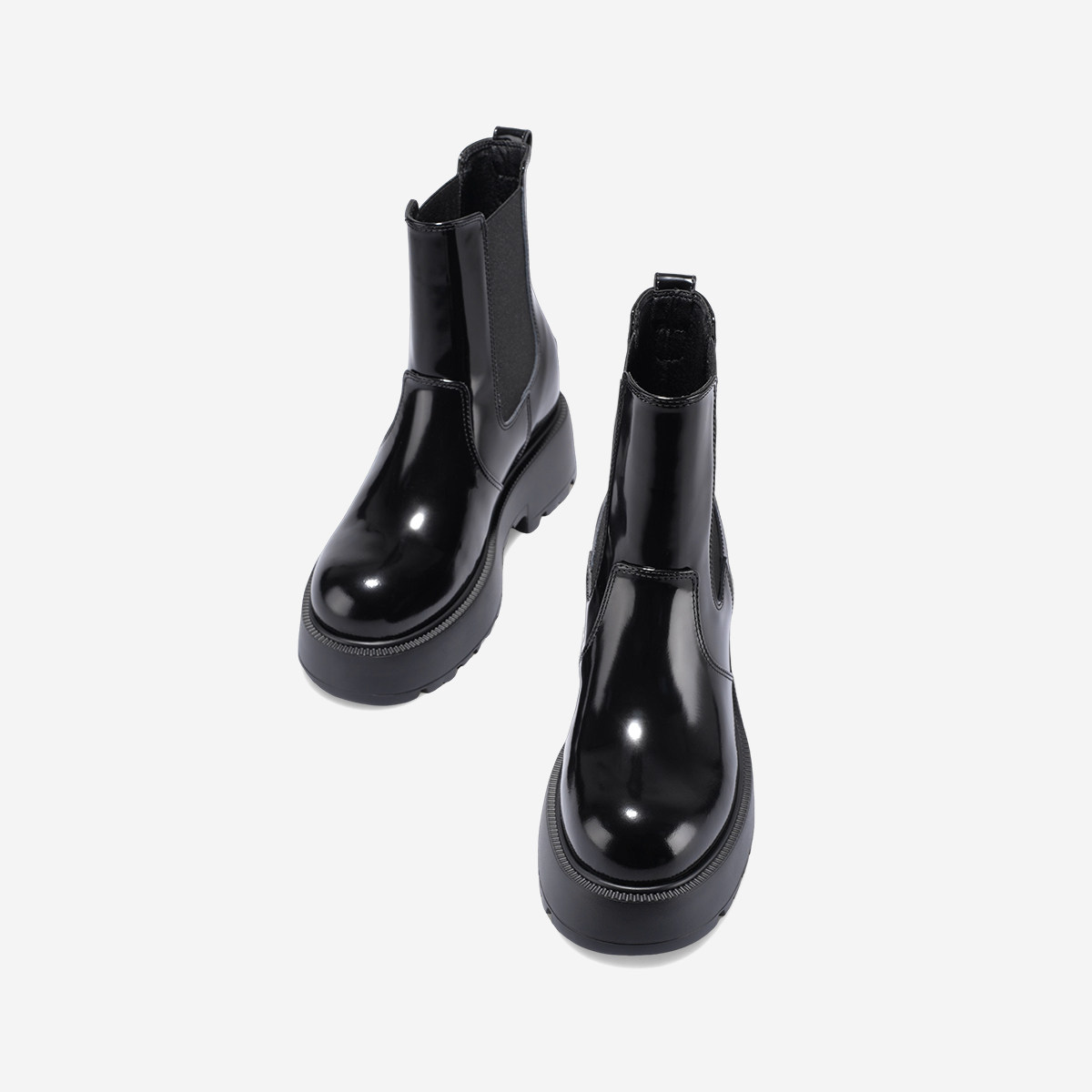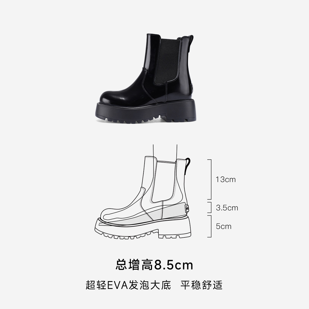 iiJin艾今25新款 8.5cm超轻厚底内增高拼接亮面切尔西短靴女982VKA