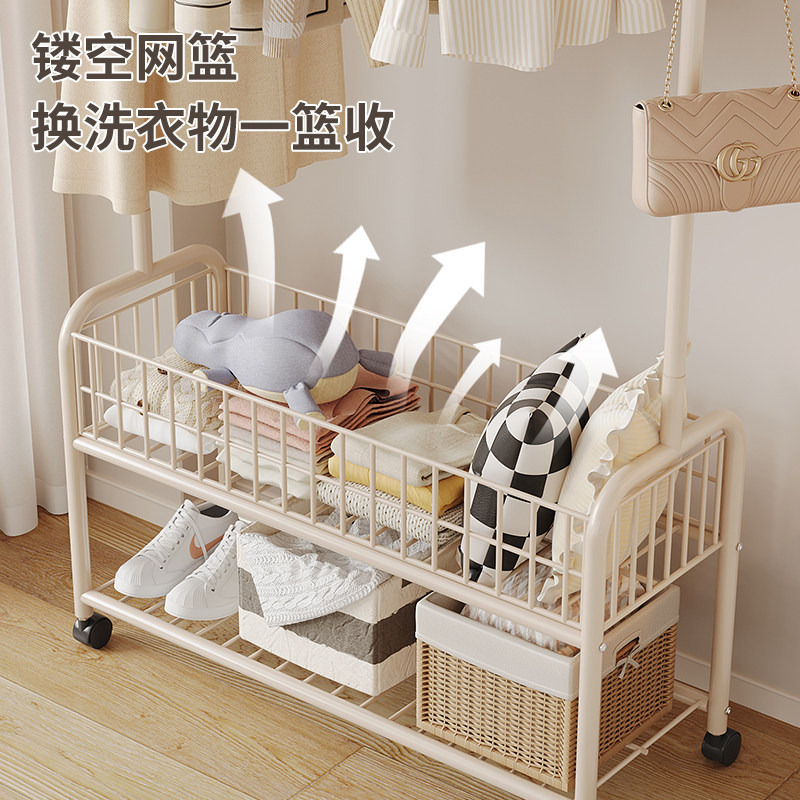衣架落地挂衣架卧室床尾衣帽架不占空间挂裤 置物架阳台带轮晾衣架