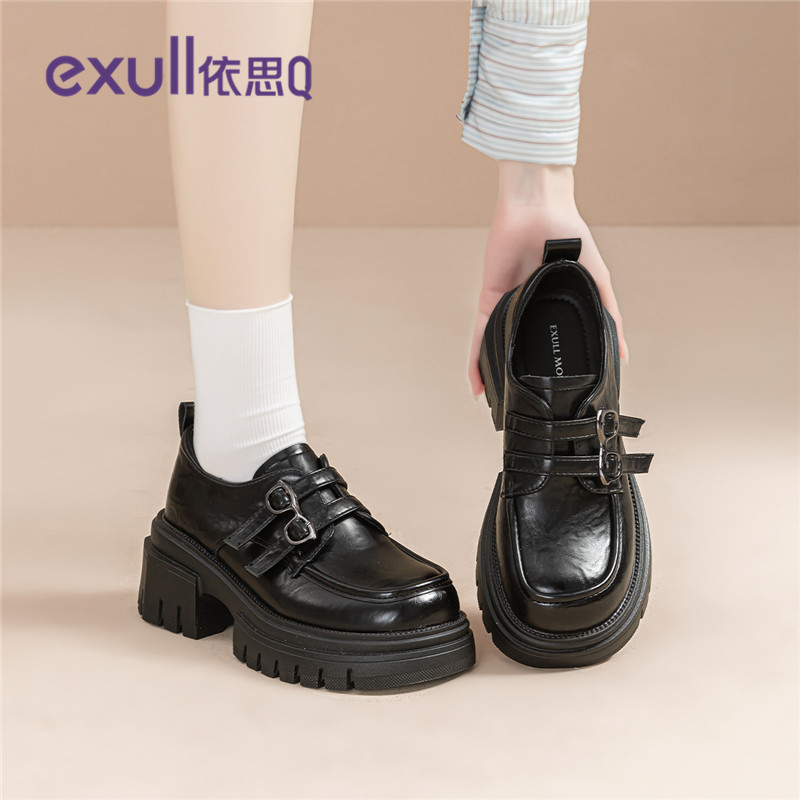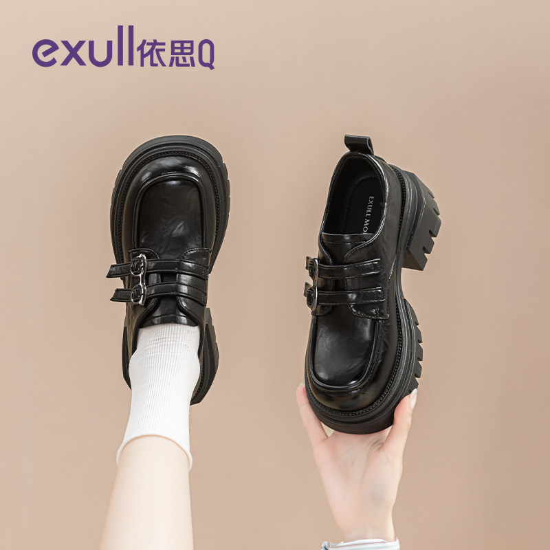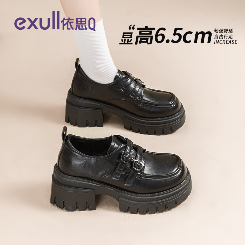 小个子增高英伦风小皮鞋 依思q厚底乐福鞋 粗跟单鞋 春季 女2026新款
