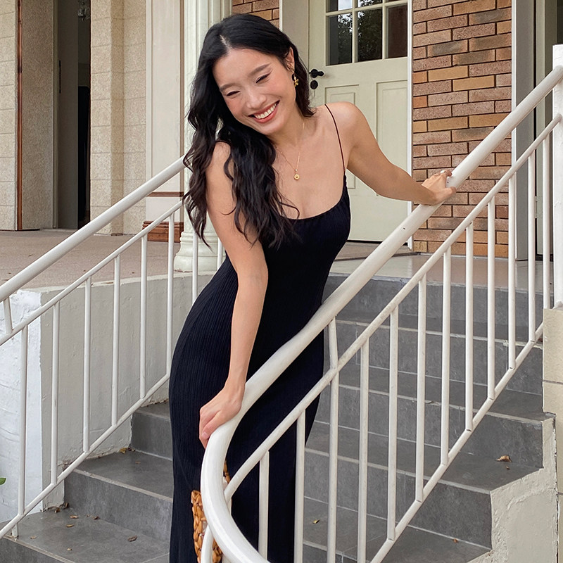 粉色吊带连衣裙女纯欲修身 法式 包臀裙开叉紧身长裙 itch痒痒 ooh