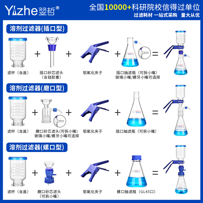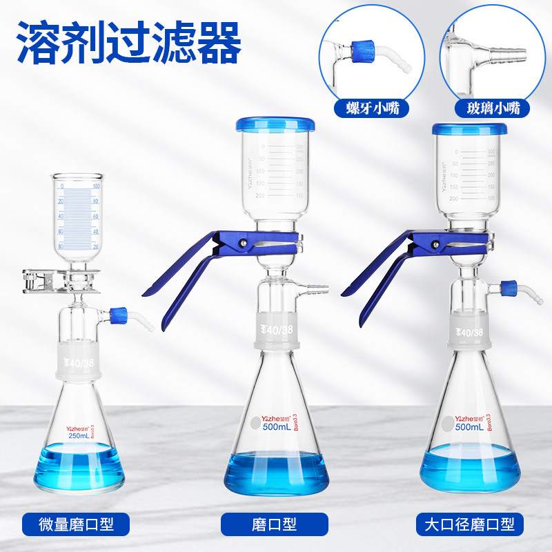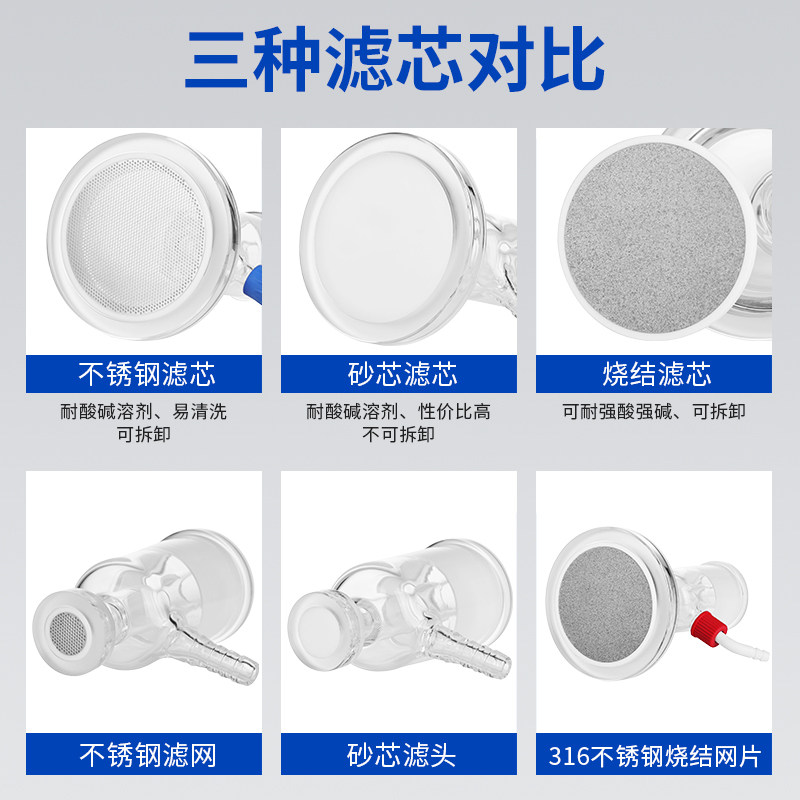 置抽滤装 2000ml微孔滤膜真空泵抽滤装 置磨口型溶剂过滤器实验室真空抽滤瓶250 1000 置 500 玻璃砂芯过滤装