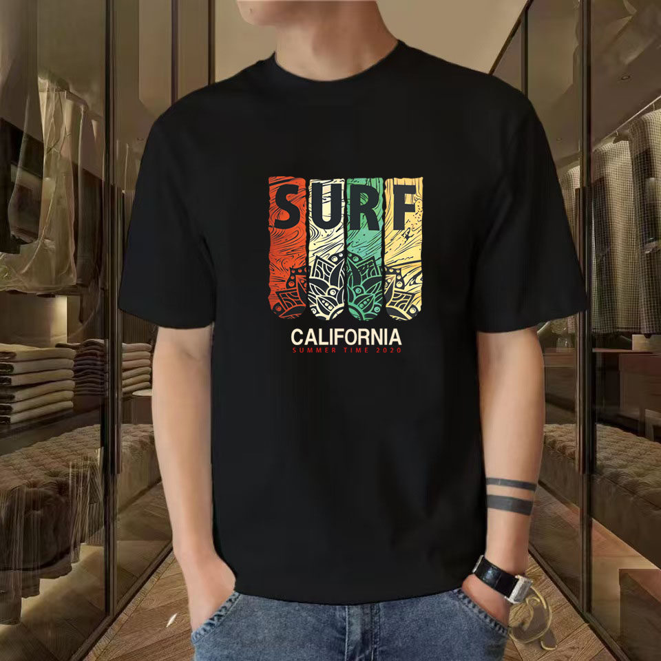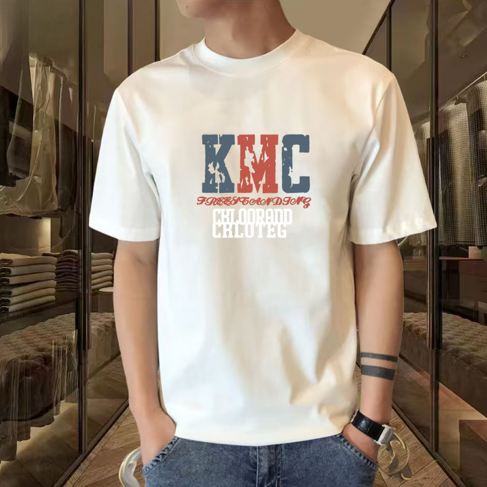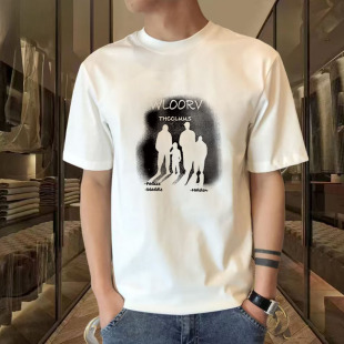 夏季 t恤圆领宽松纯色印花休闲百搭体恤衫 男士 大码 男打底 短袖 新款