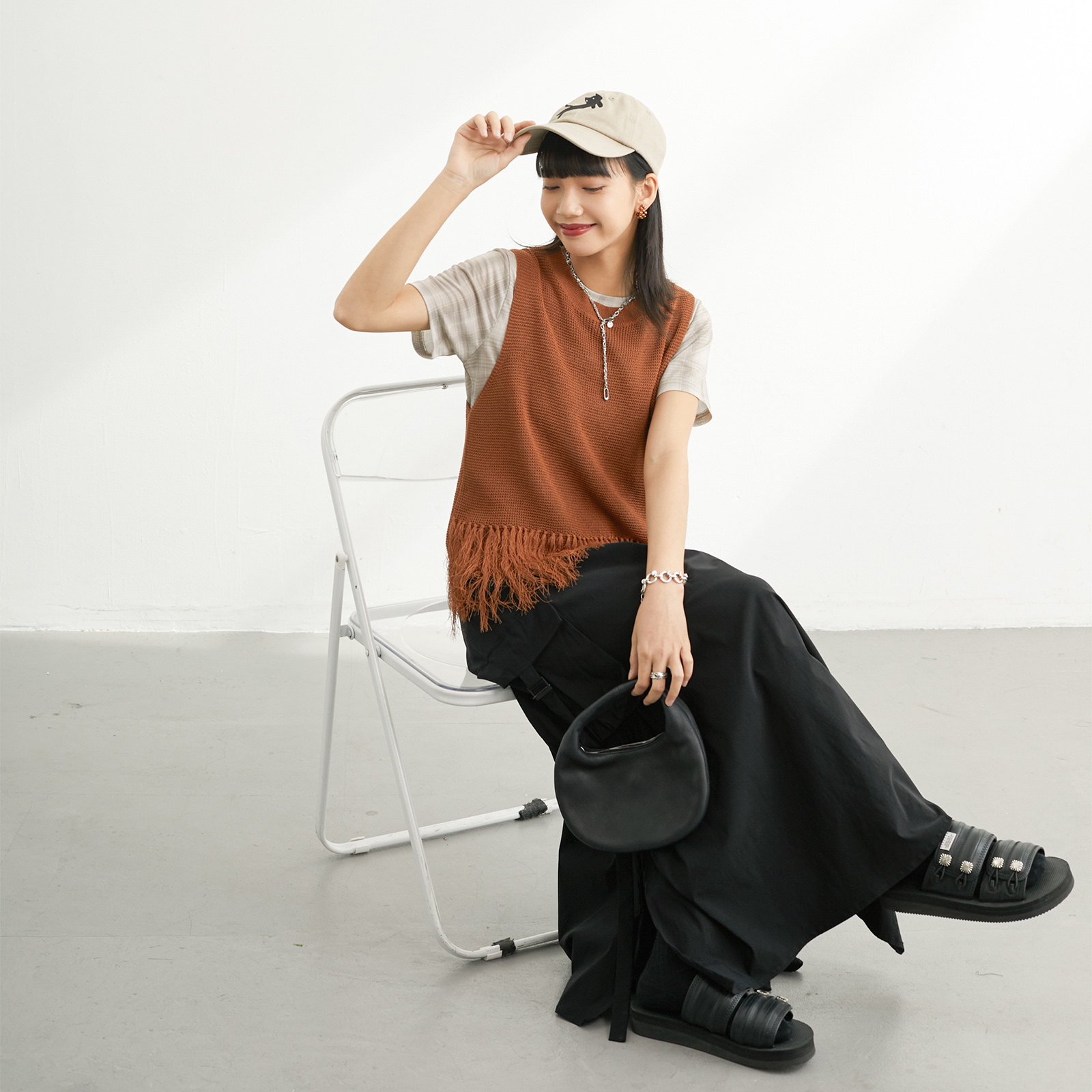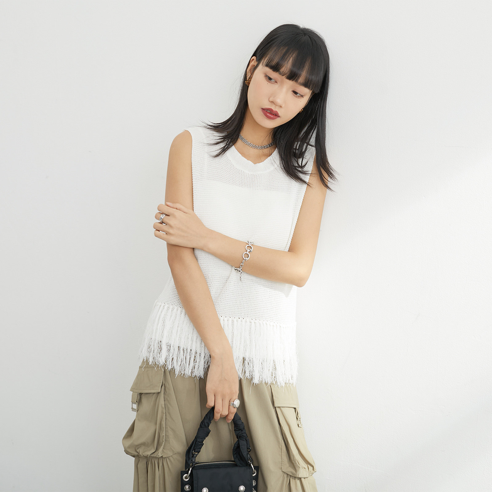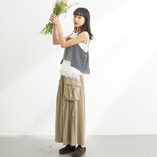 inkday日系轻复古流苏针织背心女 马甲上衣 高弹力百搭层次感无袖