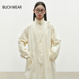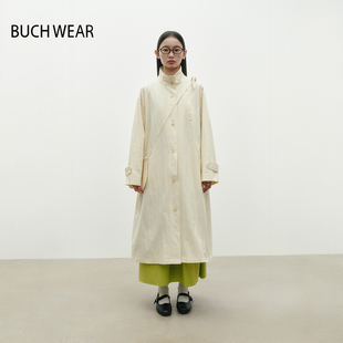 立领风衣外套 配腰带夹棉秋冬毛呢长款 PMET 多形态翻领毛呢大衣