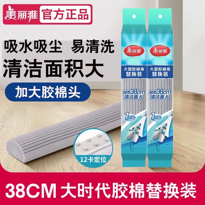 美丽雅胶棉拖头大时代拖把38cm大号胶棉头拖把头对折式 配件拖把头
