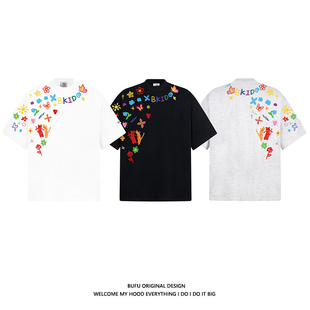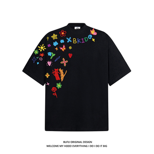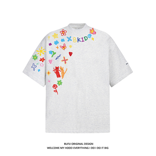 高街半袖 亿万少年BUFU潮牌手绘涂鸦短袖 美式 情侣款 tee T恤男女夏季
