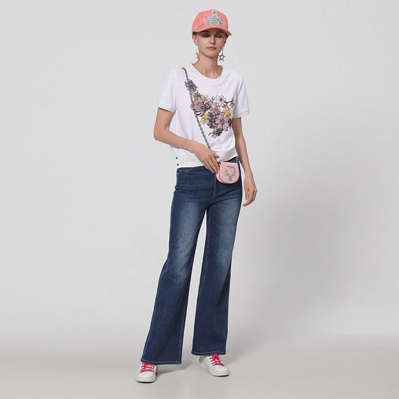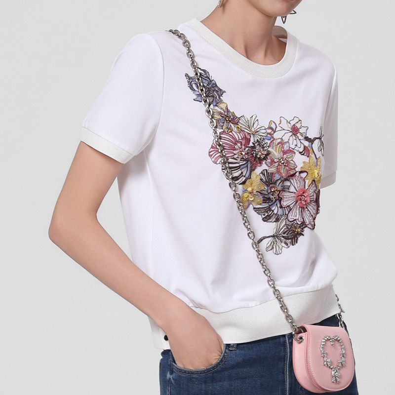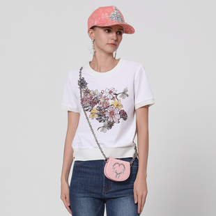 上衣女装 白色棉质圆领钉珠刺绣T恤短袖 马天奴春夏新款 专柜正品