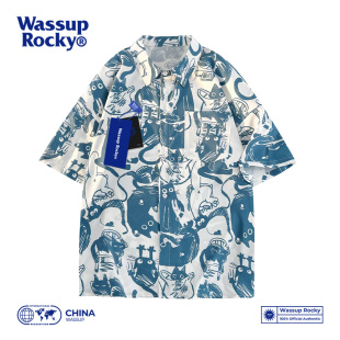 古着碎花沙滩衬衣中国风新中式 花衬衫 百合 ROCKY夏威夷短袖 WASSUP