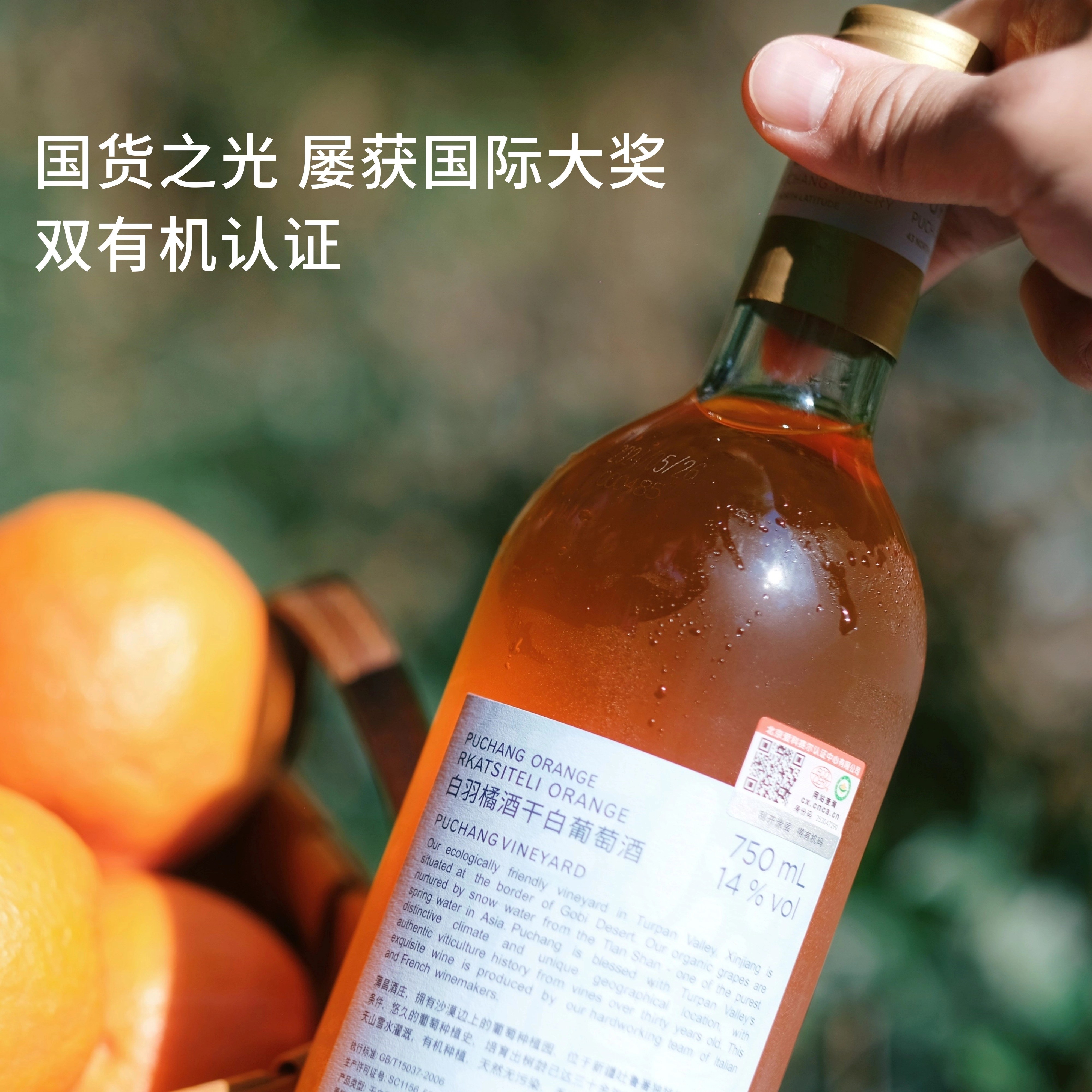 从香气到口感国产橘酒天花板 蒲昌白羽干白橙酒 中国欧盟双有机