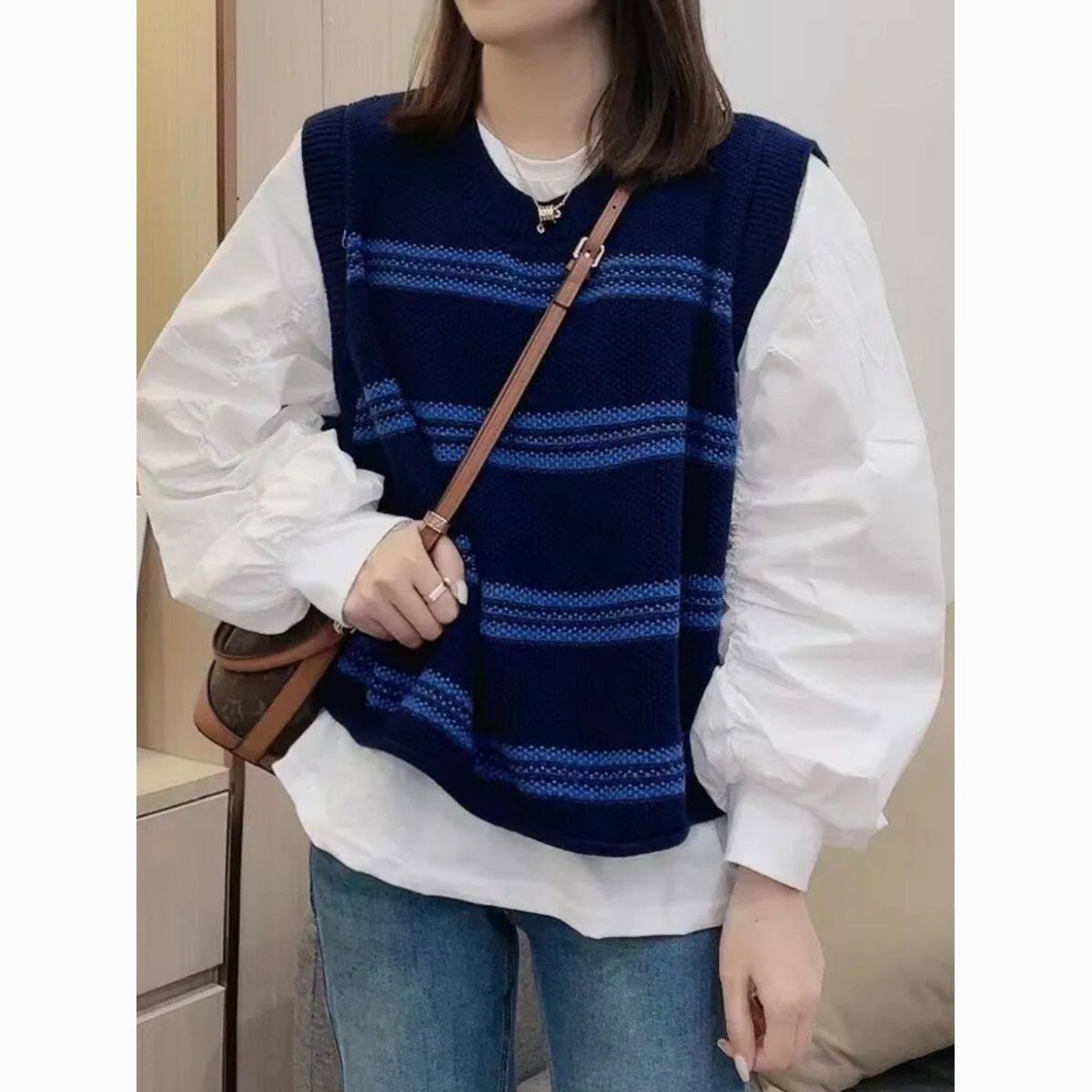 马夹背心女 针织衫 2027年春季 小众设计感百搭显瘦减龄条纹马甲时尚