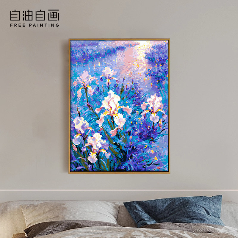 鸢尾映霞 成人手工填色涂色手绘填充油彩画 自油自画 数字油画diy