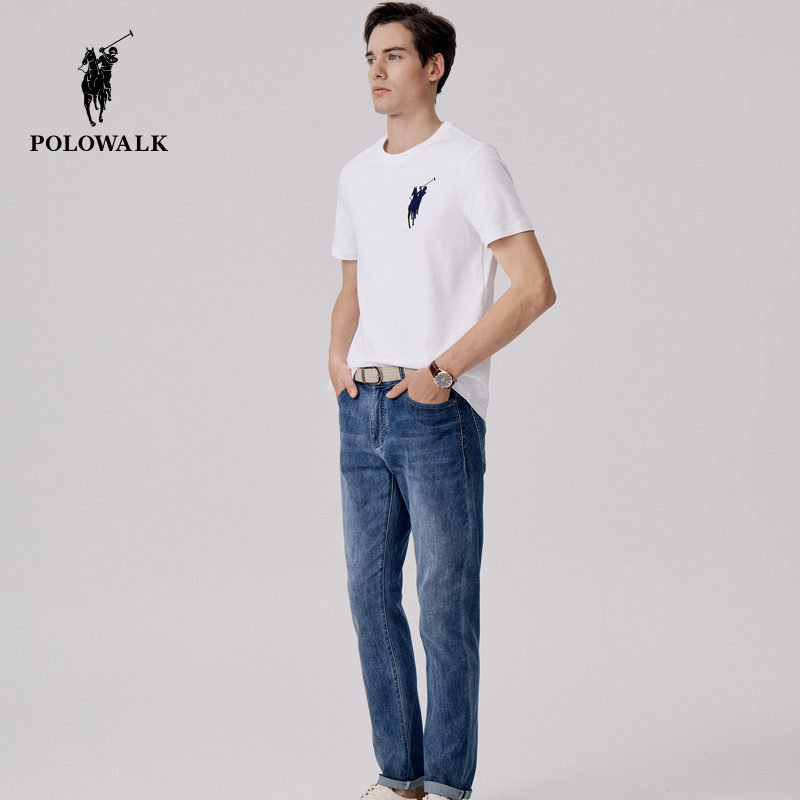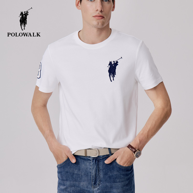百搭舒适短袖 POLOWALK夏季 简约时尚 男式 圆V领T恤AF4W42282621 新品