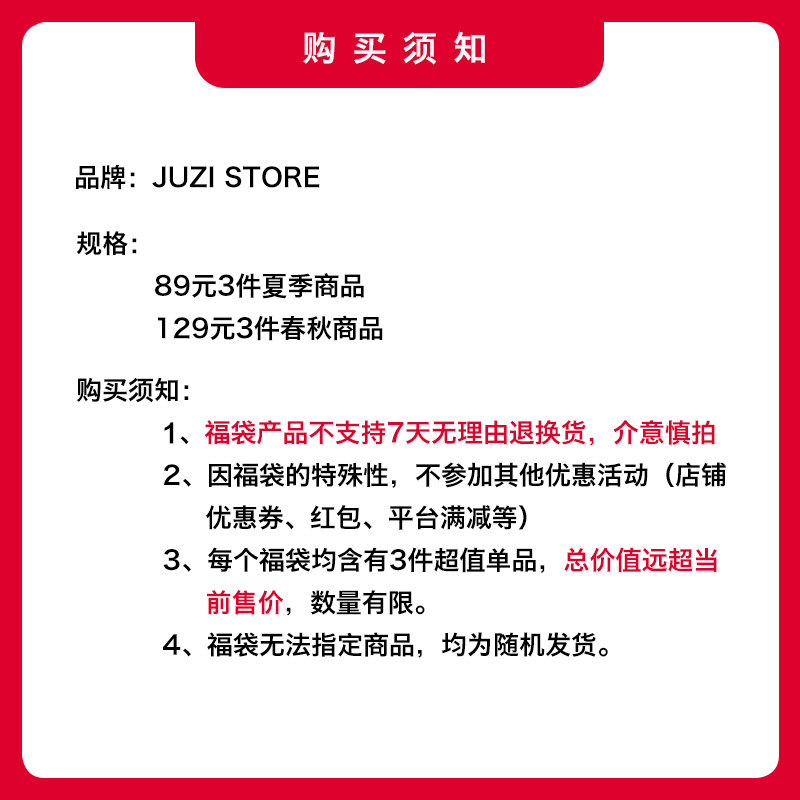 STORE童装 不支持退换 盲盒福袋男女童装 子惊喜福袋 上衣裤 JUZI