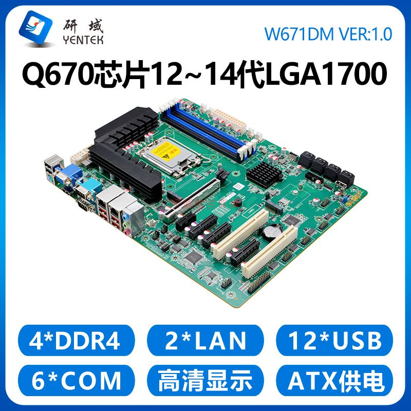 14代双HDMI服务器电脑主板RAID 研域工控W671DM双网8盘位12