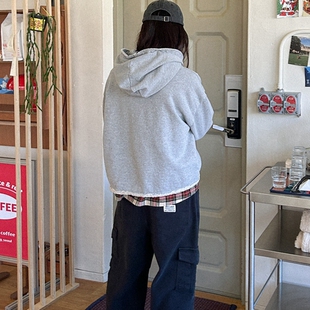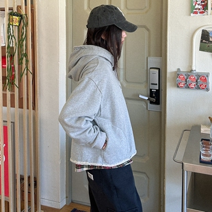 好品质韩国女春秋连帽纯棉长袖 卫衣简约休闲T327 开衫