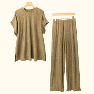 新款 松紧腰长裤 套装 套头上衣 两件套 圆领短袖 春夏外贸韩版