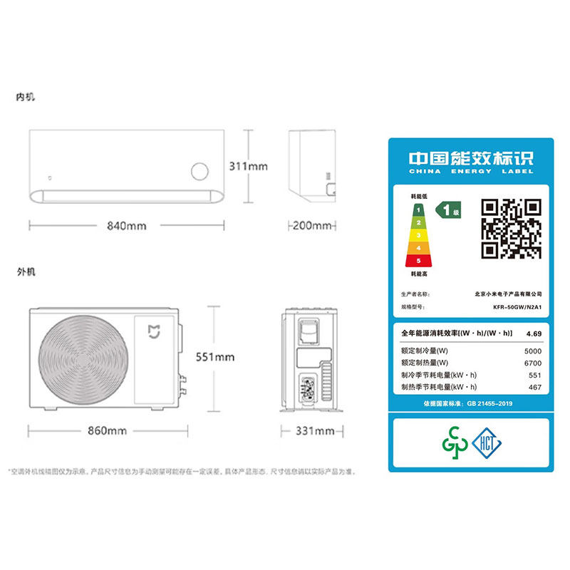 小米米家2匹巨省电空调新一级能效变频冷暖卧室挂机A 国补15%