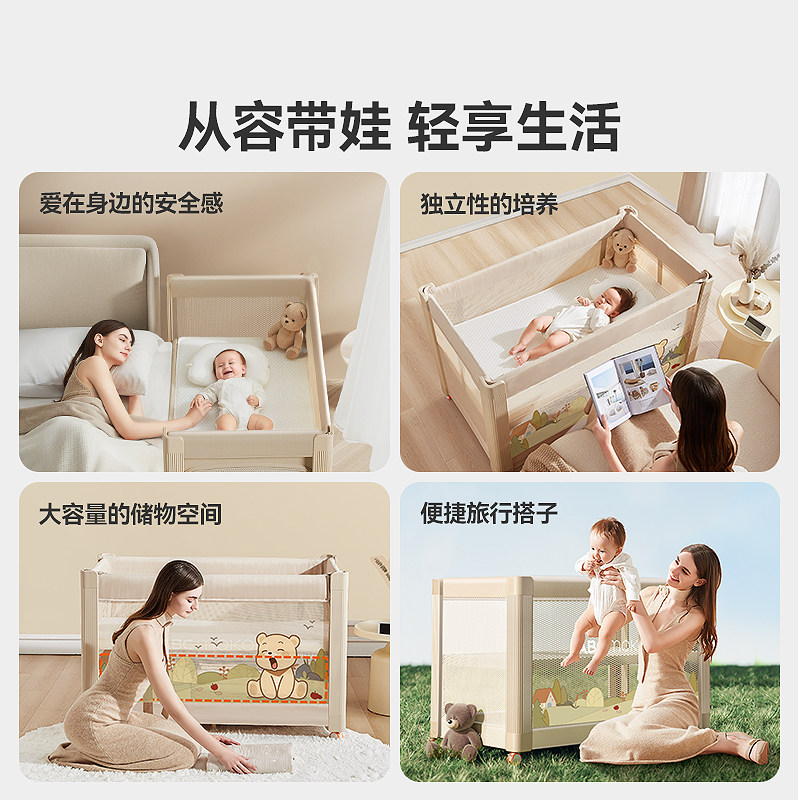 ABCmokoo瑞亚智能婴儿床可移动便携拼接大床多功能折叠新生宝宝床