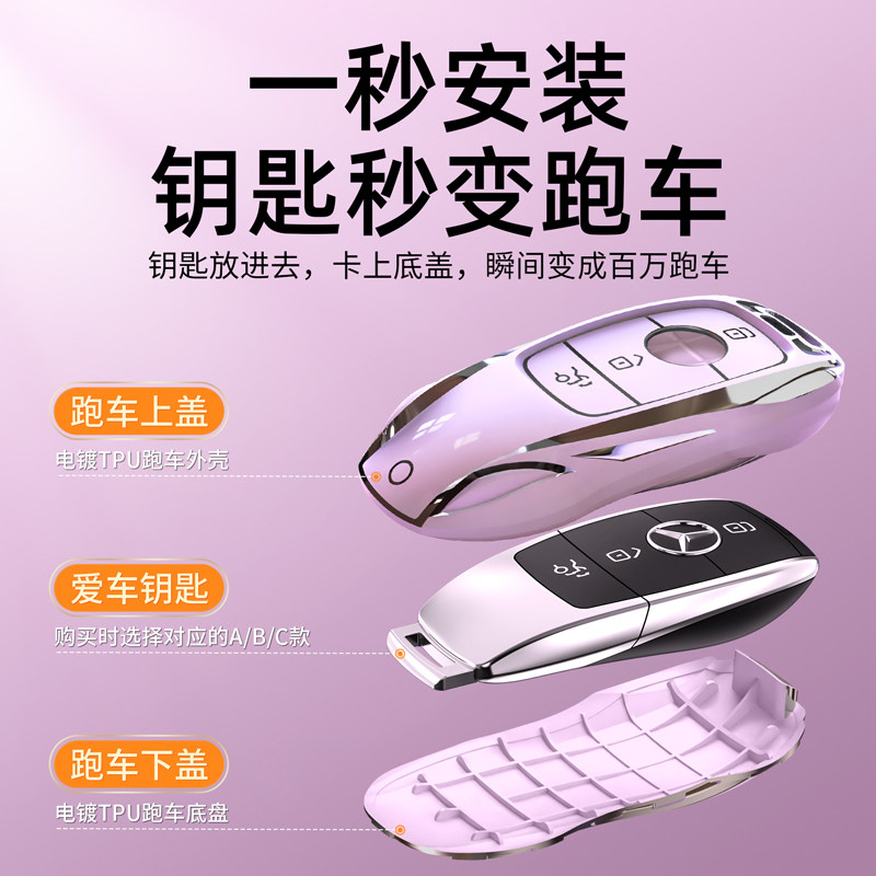 奔驰钥匙套E300L车C260L扣GLC壳A200L包C200男GLA女GLB适用GLE350