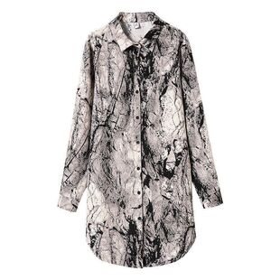 百搭超仙衬衫 复古小众水墨印花大码 时尚 上衣2025早秋新款 靓 中长款