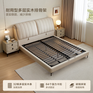 全友家居意式 极简智能电动黑色真皮双人床卧室泡芙软床2025新款