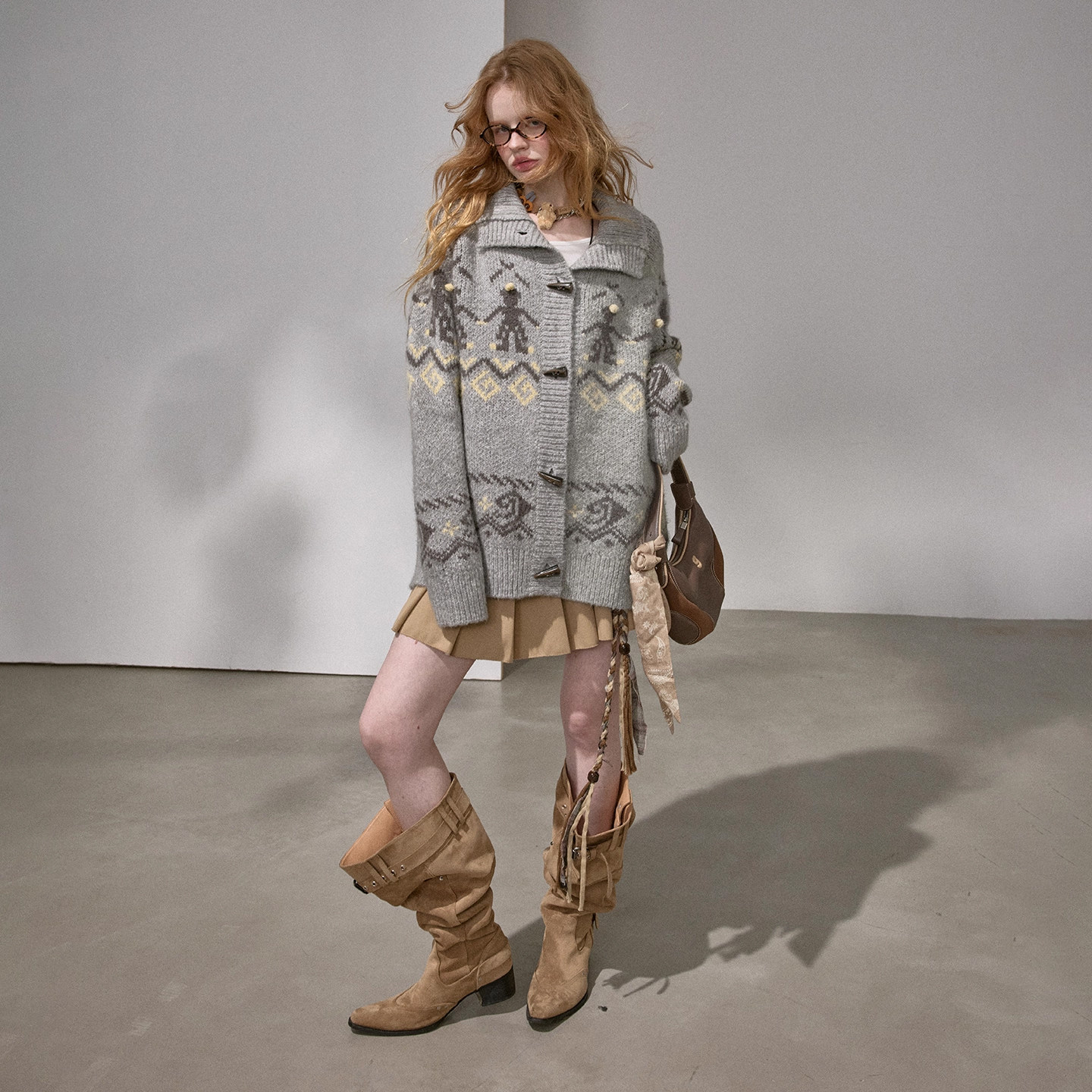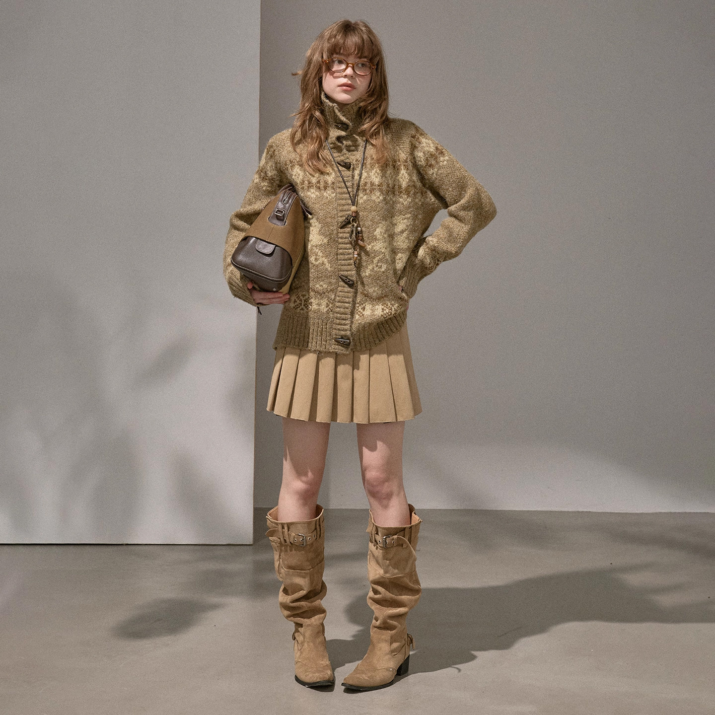 半高领设计感针织开衫 新款 洋气紫色立领方扣毛衣女2025年春季 韩版