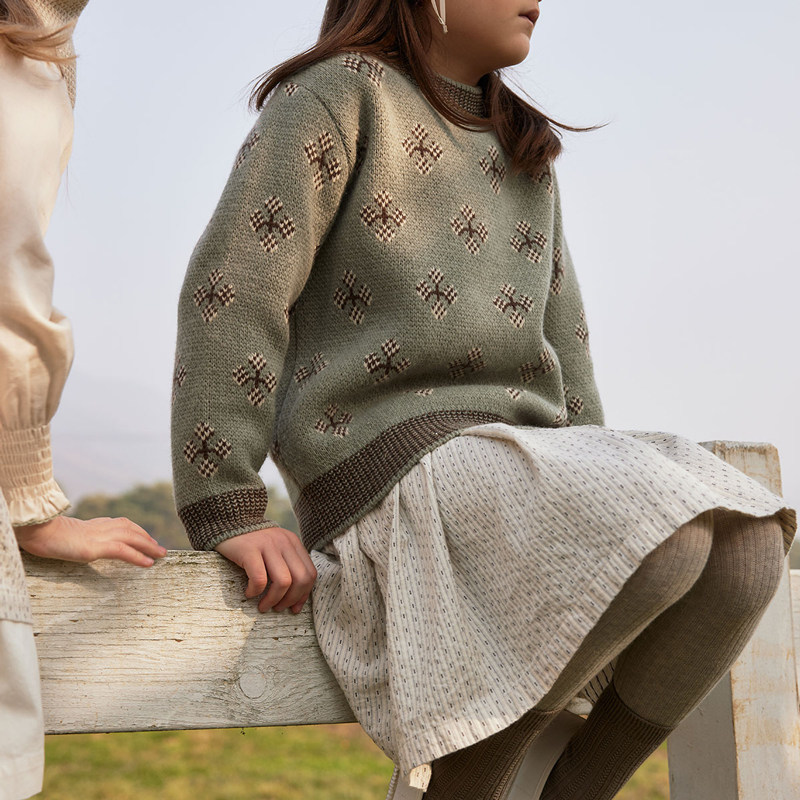 benebene女童纯棉条纹连衣裙秋冬新厚款 A字摆小众设计感高腰裙子