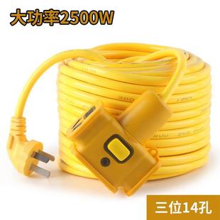 工程插座插板2500W户外十字工地拖线板20米防摔带线插排延长线16A