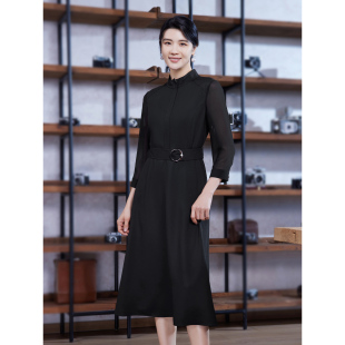 优雅拼接纱袖 粉蓝衣橱秋装 BBLLUUEE 大气立领连衣裙 商场同款