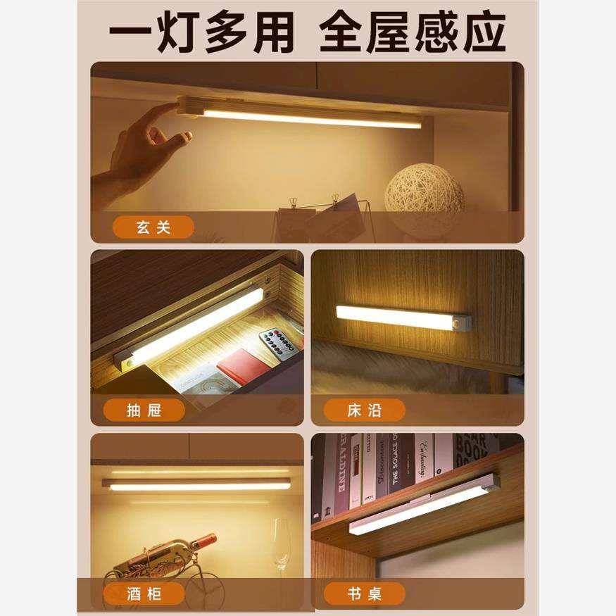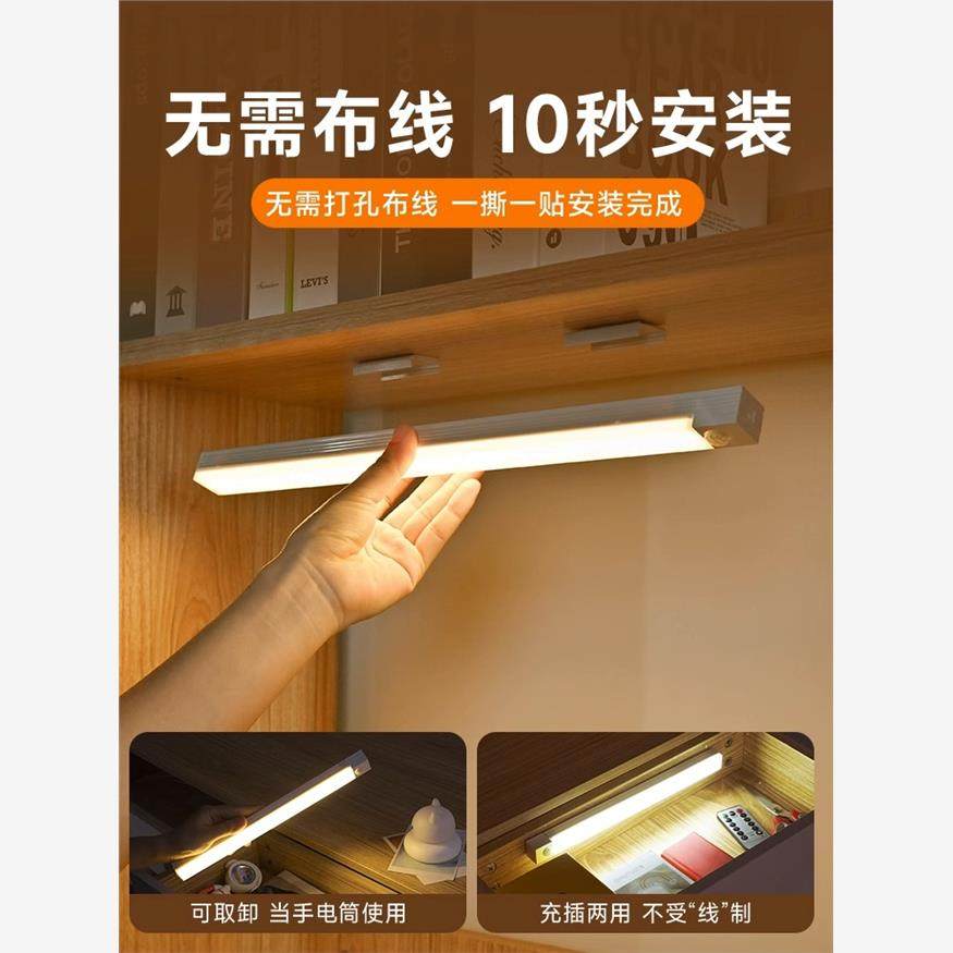 智能无线充电人体感应小夜灯免布线家用夜间过道衣柜橱柜LED灯条