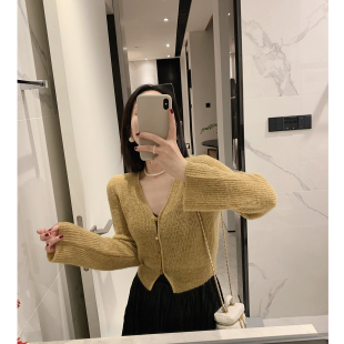 外套女早秋2024新款 misslady自留复古洋气好美喇叭袖 纽扣v领开衫