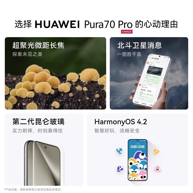 HUAWEI Pura 超聚光微距长焦 华为 Pro超高速风驰闪拍 北斗卫星图片消息华为P70旗舰手机 自营