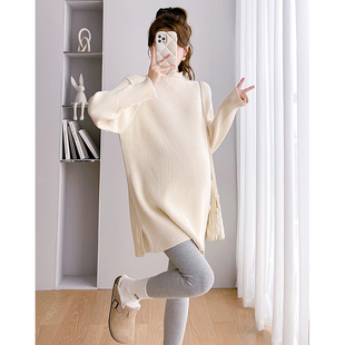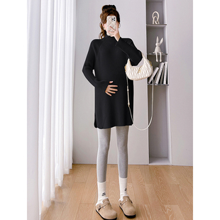 上衣 半高领杏色针织内搭毛衣连衣裙中长款 孕妇打底衫 秋冬2025新款