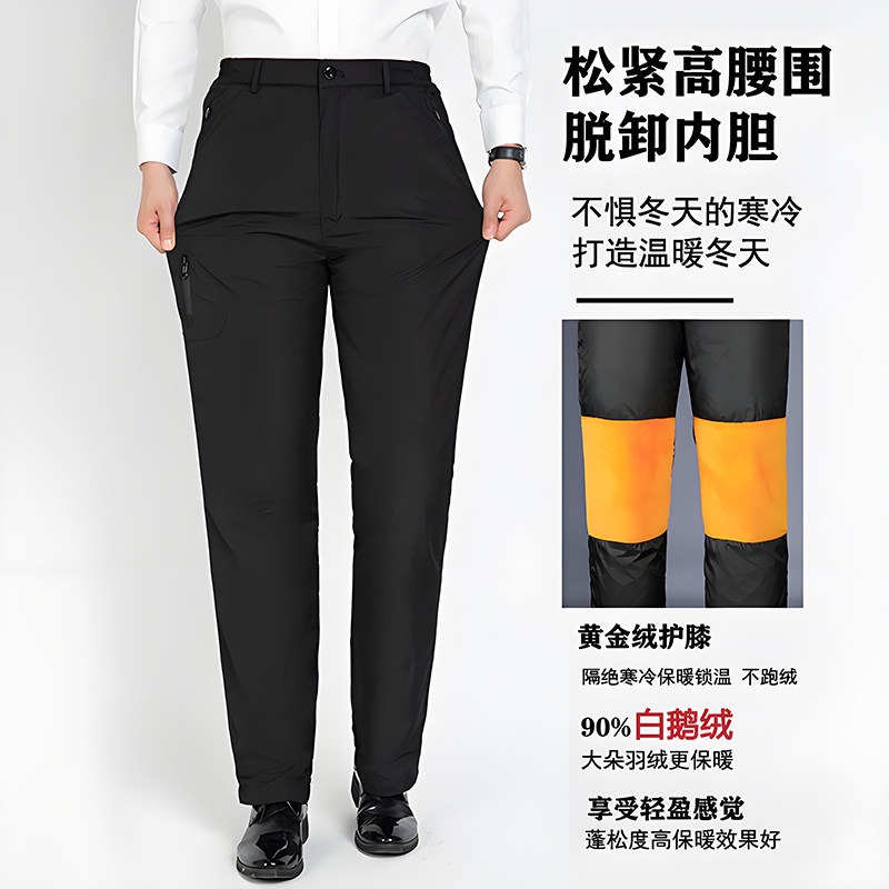 中老年可拆卸内胆加厚爸爸棉裤 外穿高腰鹅绒裤 男冬季 恒源祥羽绒裤